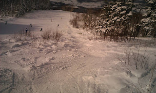 いつものラインコブは完全に圧雪されて消滅していましたが、コースの外側のラフに新しいラインが作られてました。見えないので午前中は気が付きませんでしたよ。割と楽に滑ることのできるラインで良かったです。